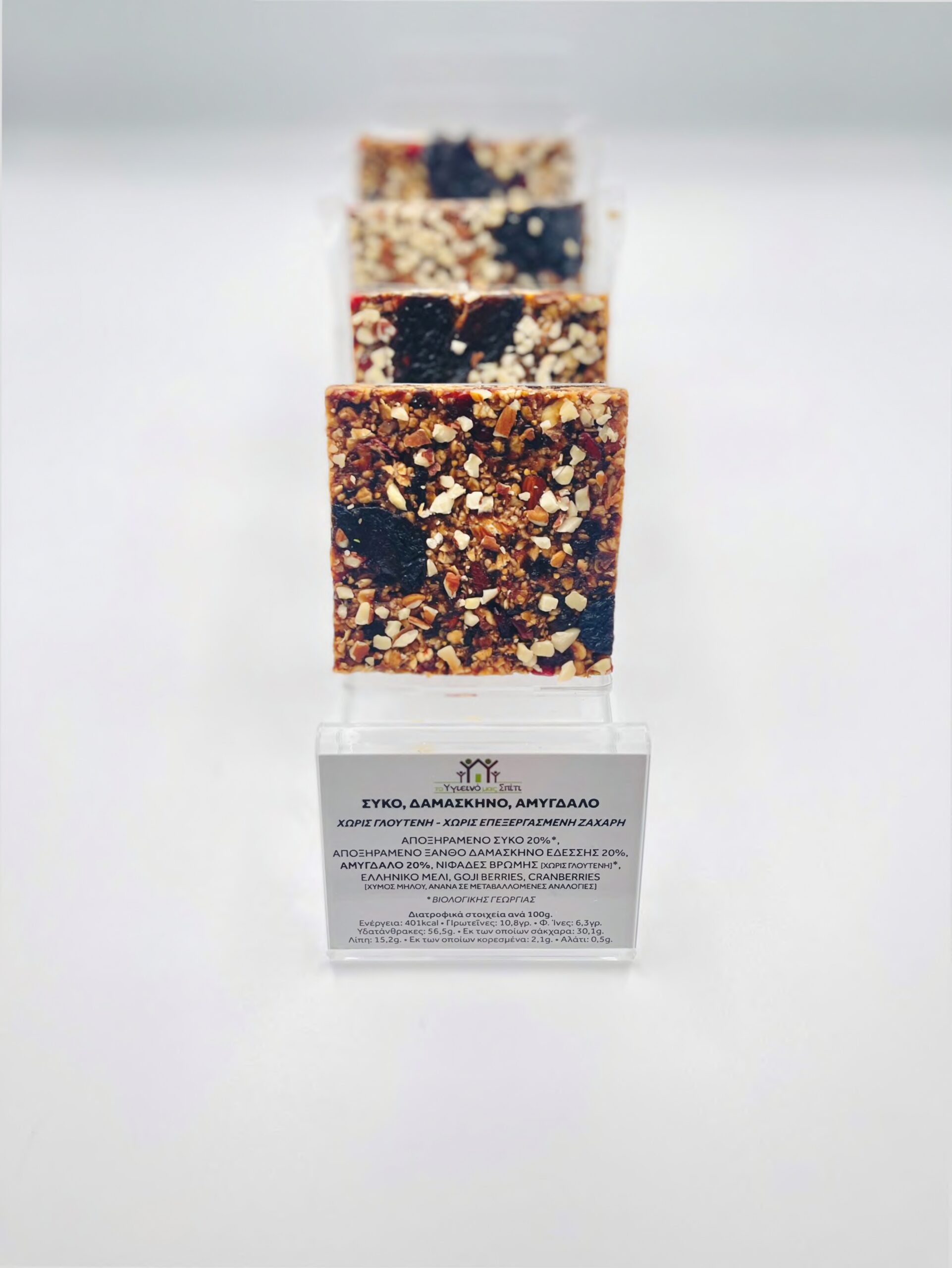Οι μπάρες από Σύκο Δαμάσκηνο και Φαγόπυρο δημιουργούνται χωρίς προσθήκη ζάχαρης και συντηρητικών, αλλά αγνό Ελληνικό Μέλι.