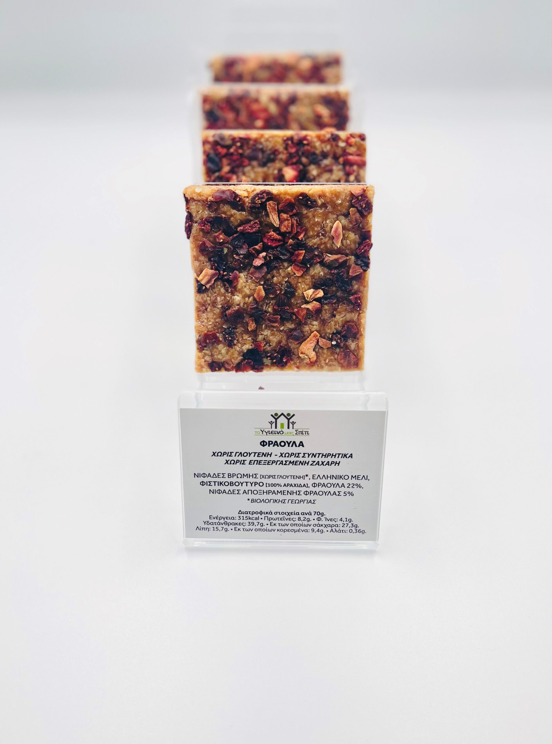 Ελληνικό μέλι, ΦΥΣΤΙΚΟΒΟΥΤΥΡΟ (100% ΑΡΑΧΙΔΑ), Φράουλα 22% ,νιφάδες αποξηραμένης φράουλας (5%)