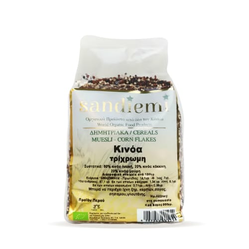 Συστατικά: 60% Κινόα λευκή, 20% Κινόα κόκκινη , 20% κινόα μαύρη.