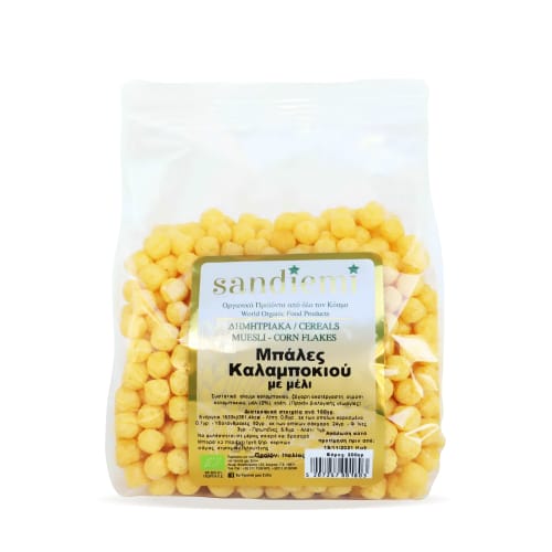 Βιολογικές μπάλες καλαμποκιού με προσθήκη μελιού. Συνδυάζονται ιδανικά με γάλα αμυγδάλου, βρώμης, καρύδας ή με γιαούρτι.