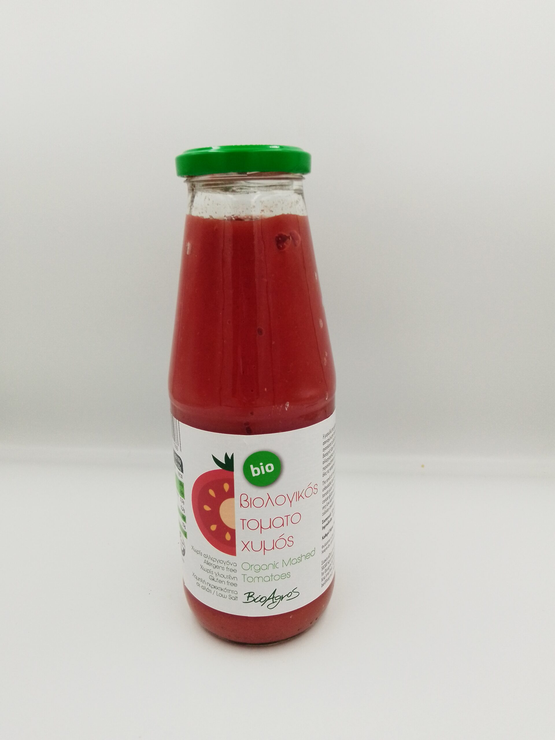 Χυμός τομάτας από τομάτα βιολογικής καλλιέργειας που προσδίδει στα γεύματα μας νοστιμιά, φρεσκάδα και άρωμα. Ταιριάζει εξαιρετικά σε διάφορα φαγητά, όπως στα όσπρια ή σε σάλτσες ζυμαρικών, ενώ όταν καταναλώνεται με γεύματα που δεν περιέχουν υδατάνθρακες αποτοξινώνει τον οργανισμό μας και συμβάλλει στην υγεία του δέρματος μας. Η τομάτα είναι πλούσια σε θρεπτικά συστατικά, όπως βιταμίνη C, λυκοπένιο, βιταμίνη Κ που είναι ευεργετική για τα οστά μας, βιταμίνες Α, βιταμίνη Ε, θειαμίνη, νιασίνη, Β1, Β2, Β6, φώσφορο, χαλκό, β-καροτένιο, σίδηρο, μαγγάνιο, μαγνήσιο και ασβέστιο.